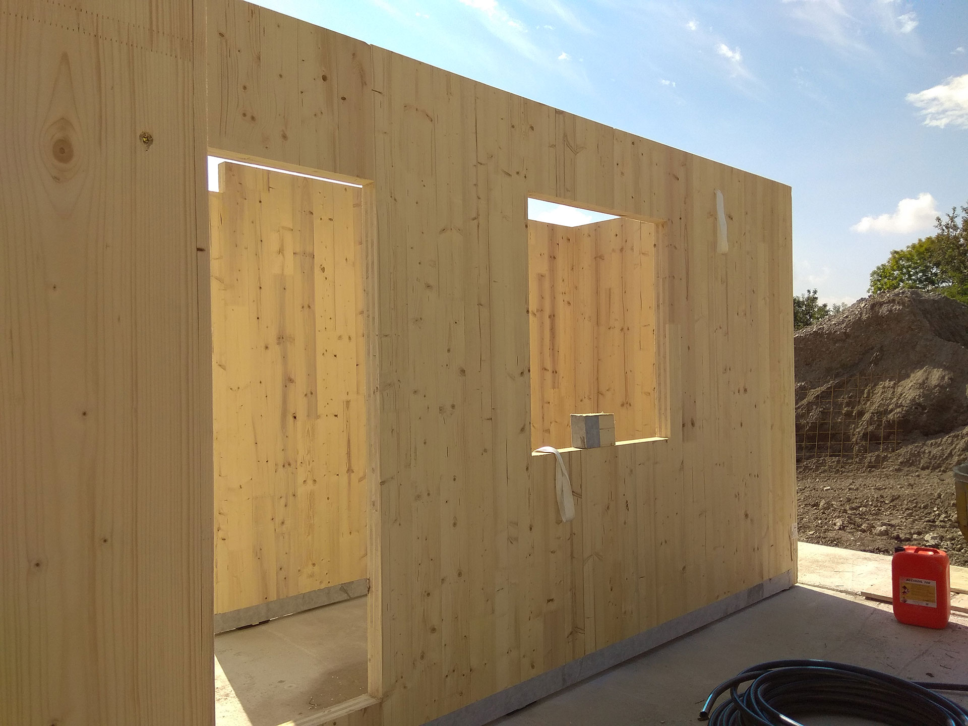 Il numero degli strati è variabile partendo da un minimo di 3. Aumentando il numero degli strati aumenta anche la stabilità del pannello. L’alto grado di prefabbricazione insito nella struttura a pannelli, implica un maggiore impegno nella fase di progettazione che viene però ampiamente compensato da una drastica riduzione dei tempi di posa in cantiere. Come nel caso delle abitazioni con struttura a telaio anche per le case realizzate con tecnologia in X-LAM viene fatto l’isolamento termo-acustico a cappotto per poi rifinire le facciate con intonaco o altri materiali. Anche qui internamente viene formata una contro-parete per permette la creazione del vano tecnico per gli impianti.